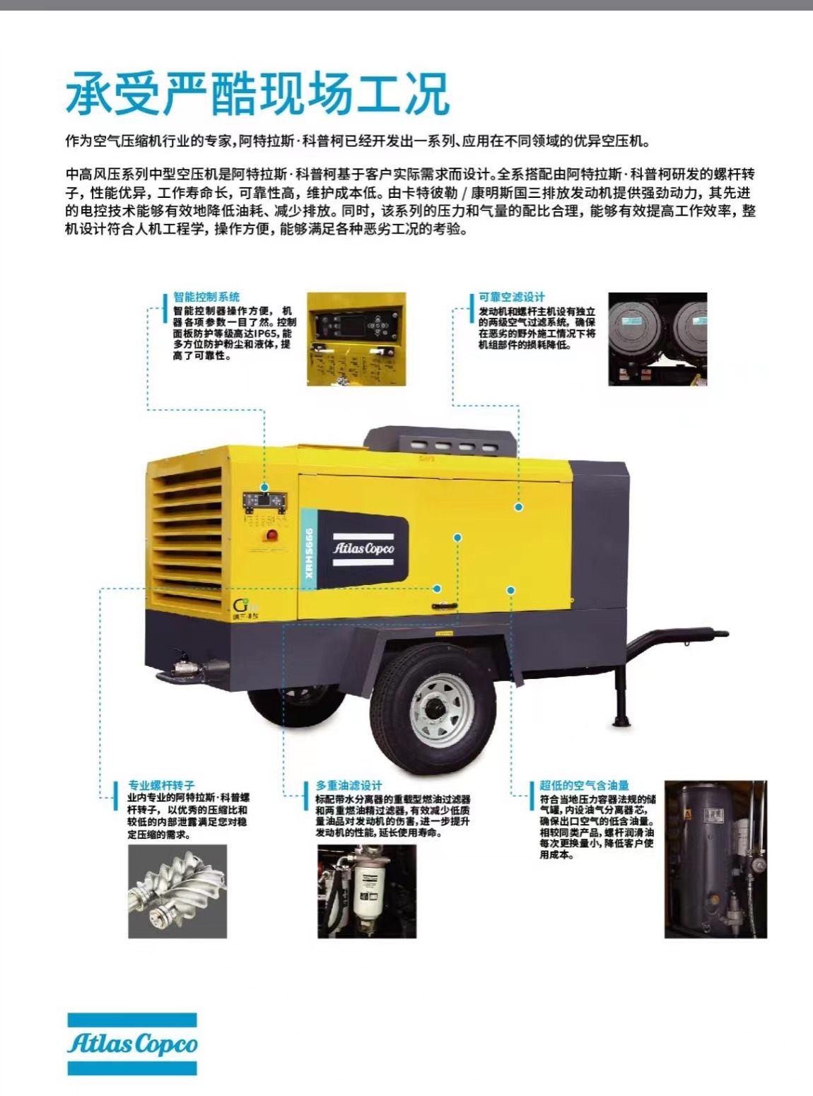 Atlas Copco(阿特拉斯·科普柯)成立于1873年,是一個(gè)擁有140多年歷史的國(guó)際品牌。動(dòng)力技術(shù)業(yè)務(wù)領(lǐng)域通過移動(dòng)空壓機(jī)、排水泵、發(fā)電機(jī)組、照明燈車、液壓工具及其零備件和售后服務(wù),為多個(gè)行業(yè)提供可持續(xù)生產(chǎn)力。